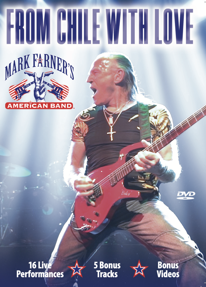 All of those songs – along with other hits and deep cuts – are featured on the new concert DVD from Mark Farner’s American Band, From Chile with Love. Featuring 16 songs with five bonus solo audio tracks and two videos (including the mini-movie “Never and Always”), it was filmed at a 2019 show at the Teatro Caupolicán in Santiago, Chile during a South American run of shows.