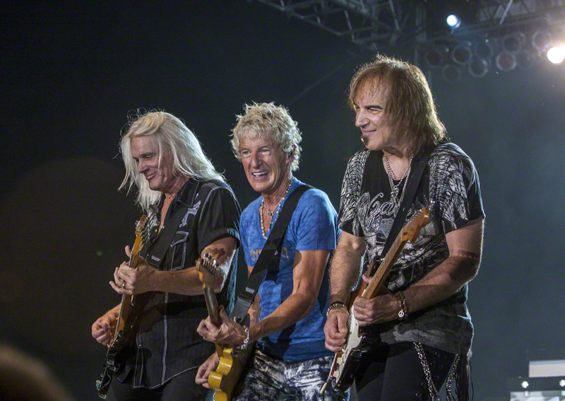 Of the three bands on the tour, Styx and REO Speedwagon have an especially long personal and professional history. Though both groups admit they will vie to be the answer to thousands of driving-home-from-the-show car conversations of “Who do you think was the best band of the night?” Styx and REO have alternated the closing slot on this tour.
